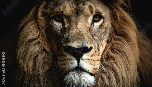 © Puasa, Fototapeta premium Majestic Lion Portrait with Dark Background.