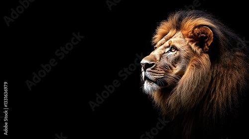 © zerogami, Fototapeta premium Majestic Lion Profile Against Black Background