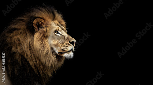 Fototapeta premium Majestic Lion Profile Against Black Background