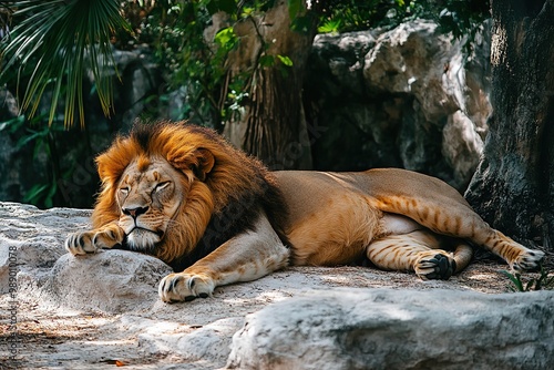 Naklejka premium Majestic lion resting in natural habitat