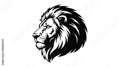 Fototapeta premium Majestic Lion Silhouette: A striking monochrome silhouette of a lion's profile, exuding strength, confidence, and regal elegance, perfect for impactful visual branding.
