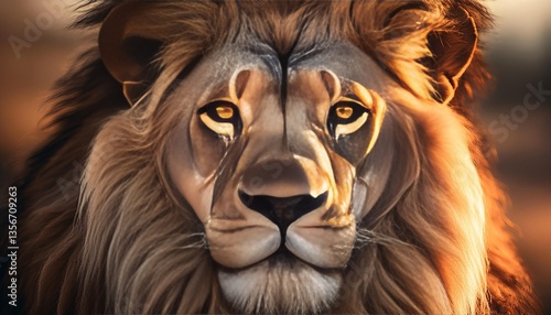 Naklejka premium Majestic lion staring with intense gaze in sunset light