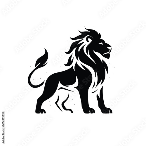 © SAYYAD, Fototapeta premium Majestic lion with a flowing mane, standing tall in a powerful pose.