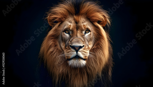 Fototapeta premium Majestic lion with a striking mane, symbolizing strength and power, exudes...