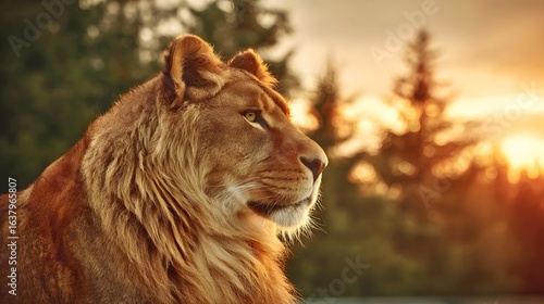 © sungedi, Fototapeta premium Majestic lioness profile at sunset.