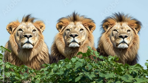 © BOJOShop, Fototapeta premium Majestic Lions Trio African Wildlife Pride Savannah Nature
