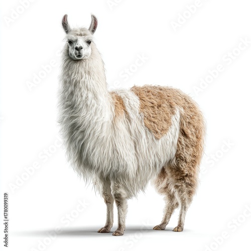© Ganesha88, Obraz premium Majestic llama portrait natural habitat photorealistic art stunning detail close-up view animal photography