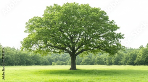 © Janature, Fototapeta premium Majestic Lone Tree in Expansive Green Field on a Bright Day