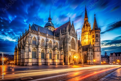 © Sirinporn, Obraz premium Majestic Long Exposure of Saint Elizabeth Cathedral, Kosice, Slovakia at Night