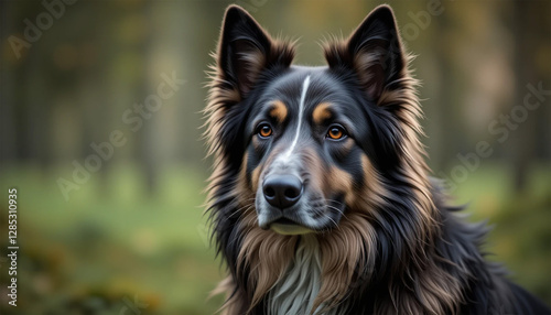 © Khawar, Fototapeta premium Majestic Long-Haired Dog in Forest