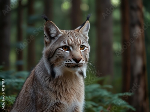 © buena17, Fototapeta premium Majestic Lynx in a Tranquil Forest Setting at Twilight