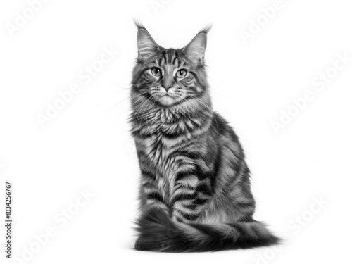 © BD ISLAM, Fototapeta premium Majestic maine coon cat sits proudly in black and white studio portrait
