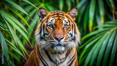 Obraz premium Majestic Malayan Tiger Portrait: Powerful Wildlife Close-up
