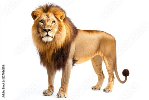 © Zahra, Obraz premium Majestic Male Lion on White Background