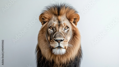 Fototapeta premium Majestic Male Lion Portrait Against Plain Background
