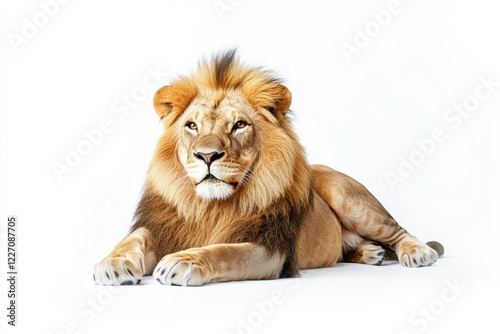 © Zahra, Obraz premium Majestic male lion resting, golden mane.