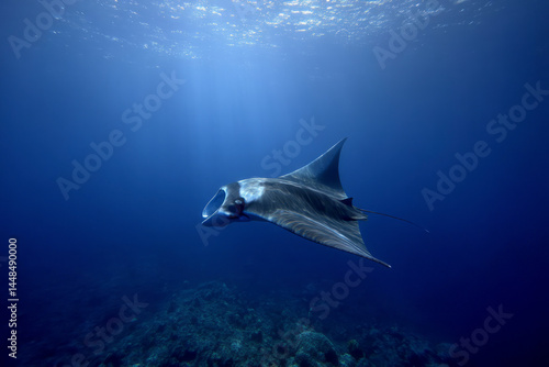 © Outsiderzone, Naklejka premium Majestic Manta Ray Swimming Beneath the Waves in Mexico
