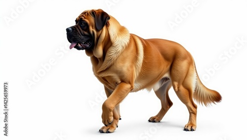 © PHOUVONG , Obraz premium Majestic Mastiff, powerful stance, white background, noble, muscular