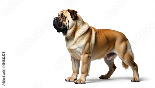 © Wimonrat, Obraz premium Majestic mastiff, powerful stance, white background, powerful dog, friendly dog