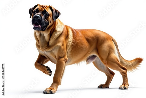 © suchetpong, Obraz premium Majestic mastiff, powerful stance, white background, powerful, white, domestic