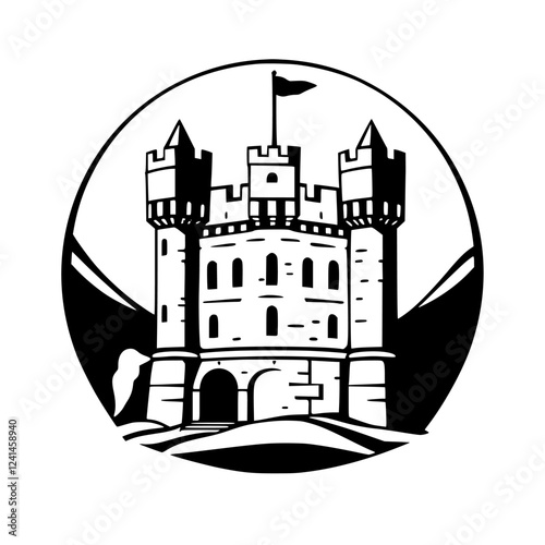 Fototapeta premium Majestic Medieval Castle Tower: A Fortified Symbol of History and...