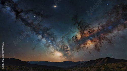 Fototapeta premium Majestic Milky Way Galaxy Over Desert Mountains