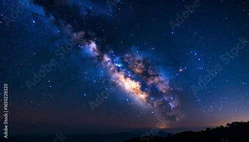 Fototapeta premium Majestic Milky Way Galaxy Over Mountain Silhouette, Night Sky, Stars, Universe.