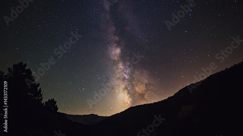 Fototapeta premium Majestic Milky Way Galaxy over Silhouetted Mountains at Night