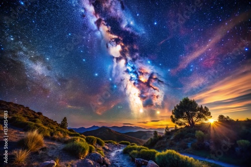 © Arethaawykoff, Fototapeta premium Majestic Milky Way Over Mountain Landscape