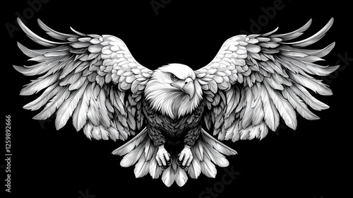 Obraz premium Majestic Monochrome Eagle with Powerful Outstretched Wings Soaring Through...