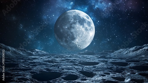 © Berkah, Fototapeta premium Majestic Moon Above Cratered Lunar Landscape