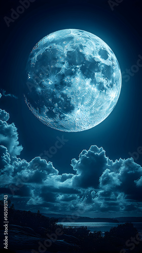 © indasah, Fototapeta premium Majestic moonlit sky with large, luminous moon and dark clouds