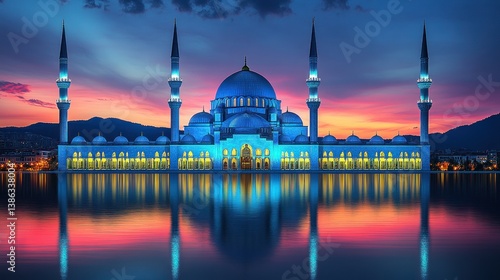 © wisnuromad art, Fototapeta premium Majestic Mosque at Sunset: A Serene Reflection