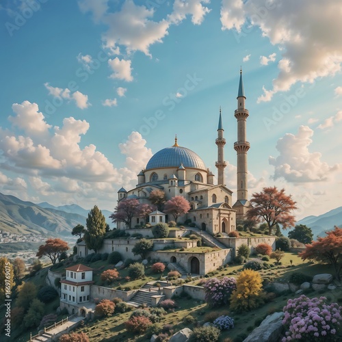 Obraz premium Majestic Mosque Hilltop Landscape - Scenic landscapes