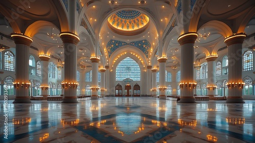 Obraz premium Majestic Mosque Interior: A Symphony of Light and Architecture