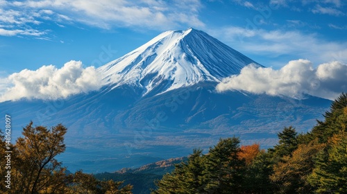 Fototapeta premium Majestic Mount Fuji: A Breathtaking Autumn Panorama