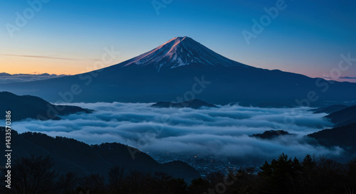 Fototapeta premium Majestic Mount Fuji at Sunrise Above a Sea of Clouds – Iconic Japanese...