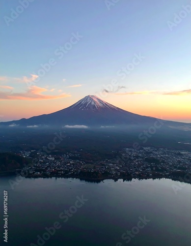 © Eka, Fototapeta premium Majestic mountain at sunset, serene lake view