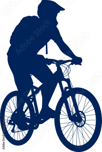 Fototapeta premium majestic mountain biker silhouette embracing the trail, conquering the peak, unforgettable adventure, isolated on transparent background