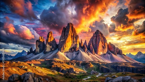 © Arnada, Fototapeta premium Majestic Mountain Double Exposure: Cloudscape & Rocky Foreground