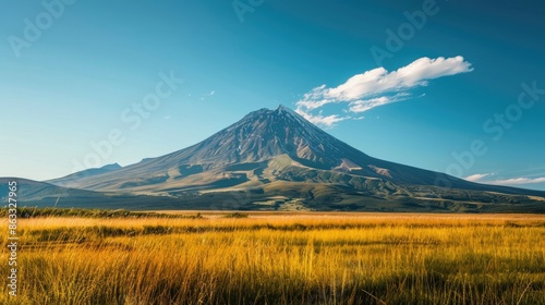 Fototapeta premium Majestic mountain in beautiful countryside under clear blue sky on sunny day