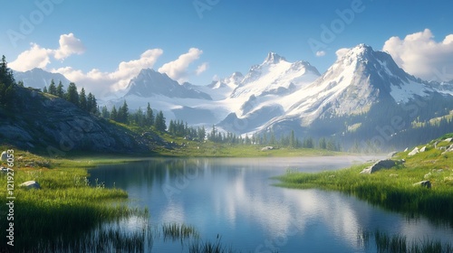 © nuyirdna, Fototapeta premium Majestic Mountain Lake Landscape in Summertime