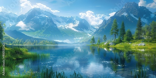 Fototapeta premium Majestic Mountain Lake Landscape with Reflection