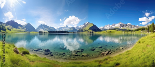 © evening_tao, Naklejka premium Majestic Mountain Lake Panorama