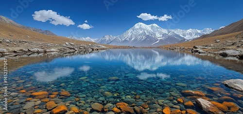 Obraz premium Majestic Mountain Lake Reflection: A Serene Himalayan Landscape