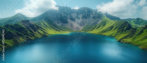 © Hamdee, Fototapeta premium Majestic Mountain Lake Serenity Nature Landscape Travel Scenery Adventure Hiking Outdoors Panorama