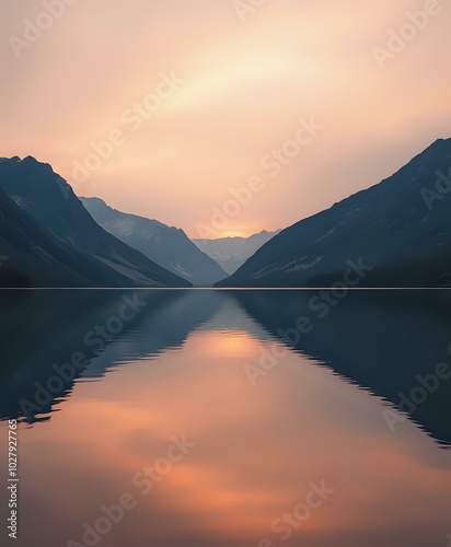 © Flop, Fototapeta premium Majestic Mountain Lake Sunset with lone figure - AI Generated