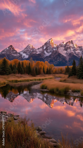 © aimired, Fototapeta premium majestic mountain landscape at sunset