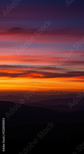 Fototapeta premium Majestic mountain landscape at sunset with vibrant sky and silhouetted peaks