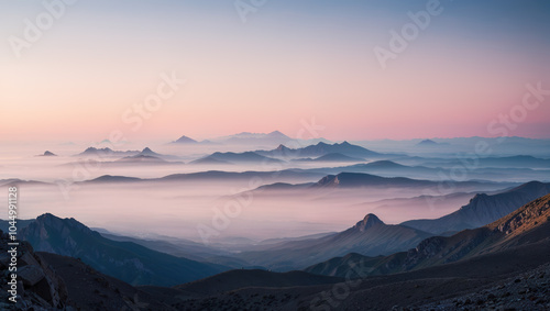 Fototapeta premium Majestic mountain landscape emerging from a sea of clouds at sunset